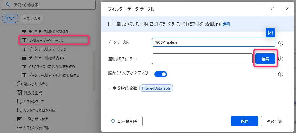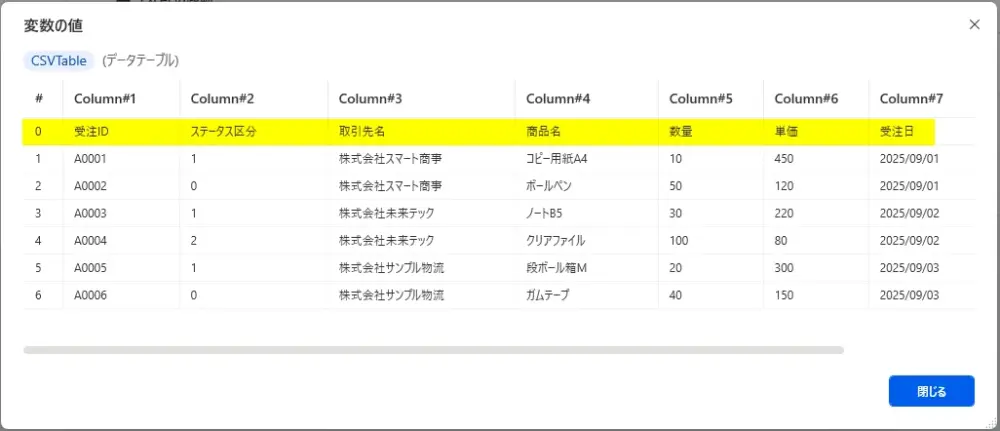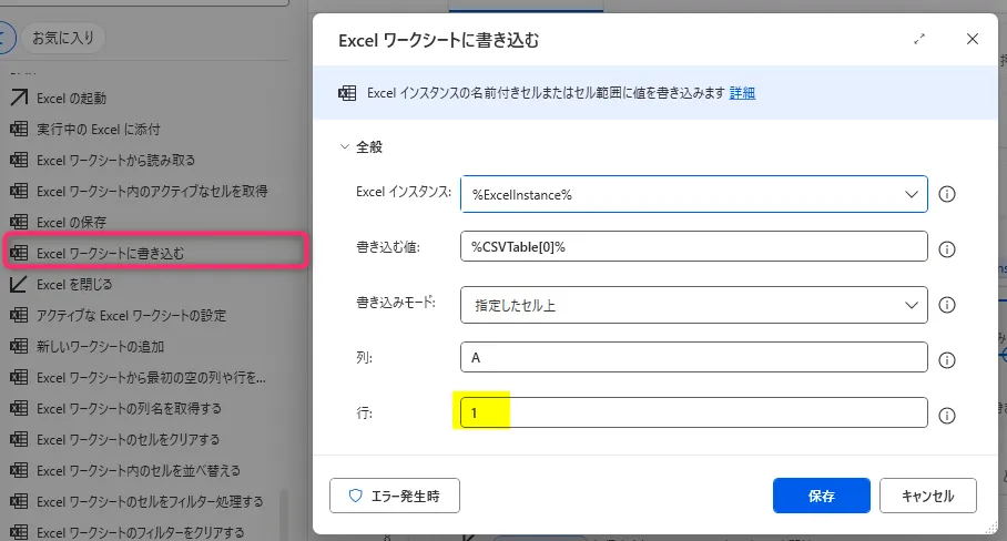 5.「Excelワークシートに書き込む」(CSVのタイトル行を転記)