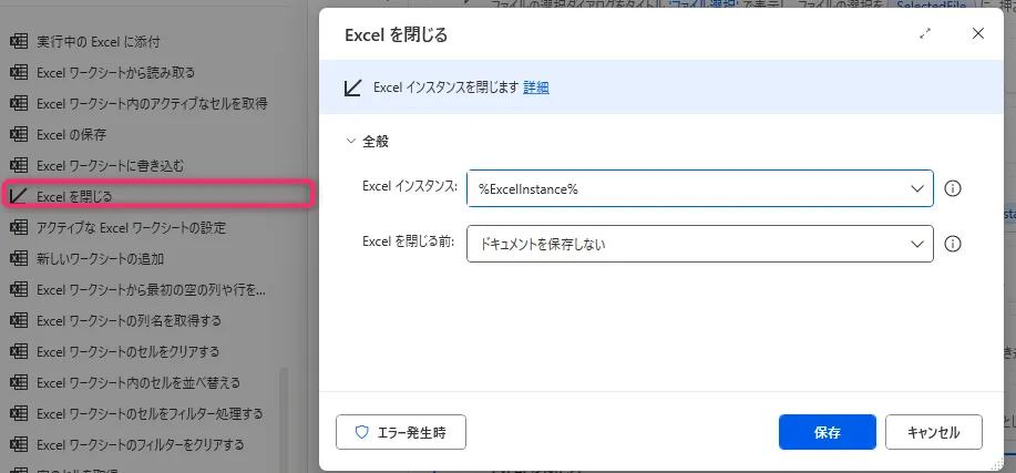 6.「Excelワークシートに書き込む」(抽出データを転記)