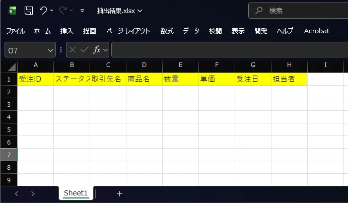 ExcelのA1 を起点として横方向にタイトル行が転記されます。