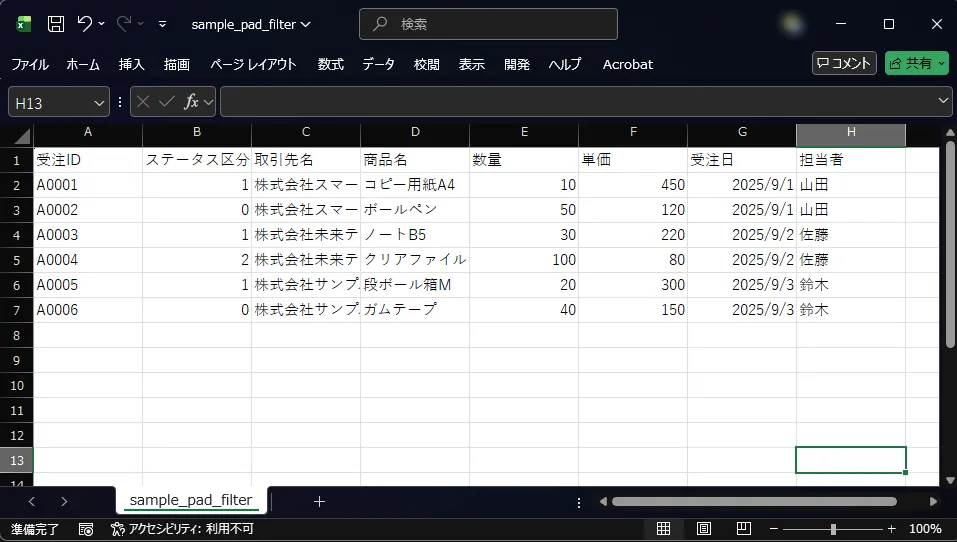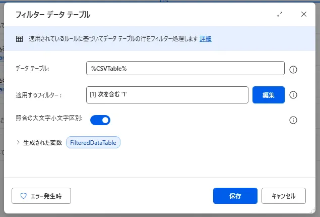 ステータス区分が「1」の行だけを抽出する設定をします。