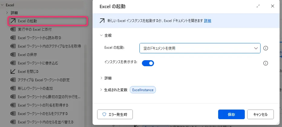 タイトル行付きで別のExcelファイルに転記するフローを作成します。