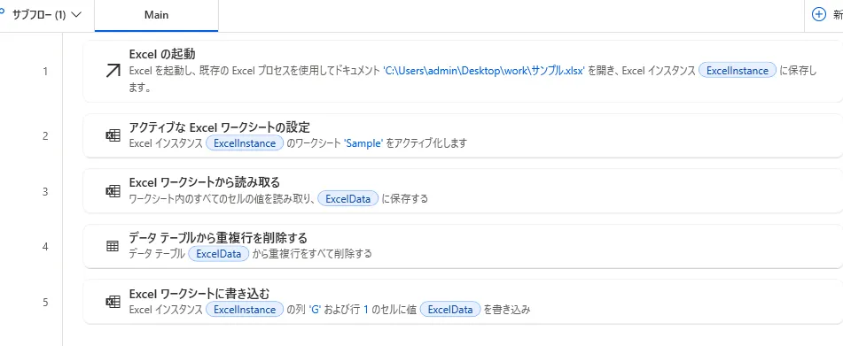 Power Automate Desktopで重複行を削除する方法(複数列)
