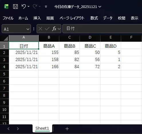 抽出された当日データだけをまとめた 新しいExcelファイル が自動生成されます。