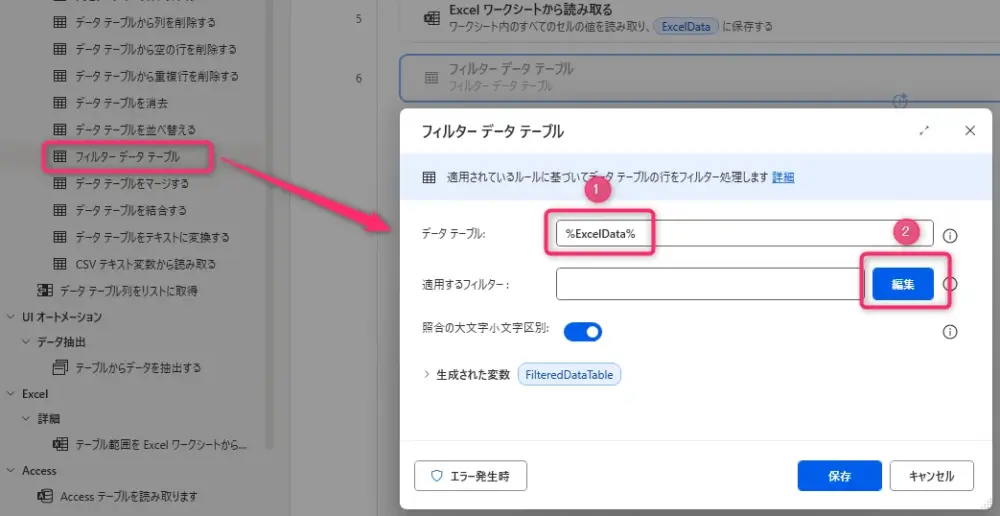 抽出結果は新しいデータテーブル(FilteredDataTable)として保持されます。