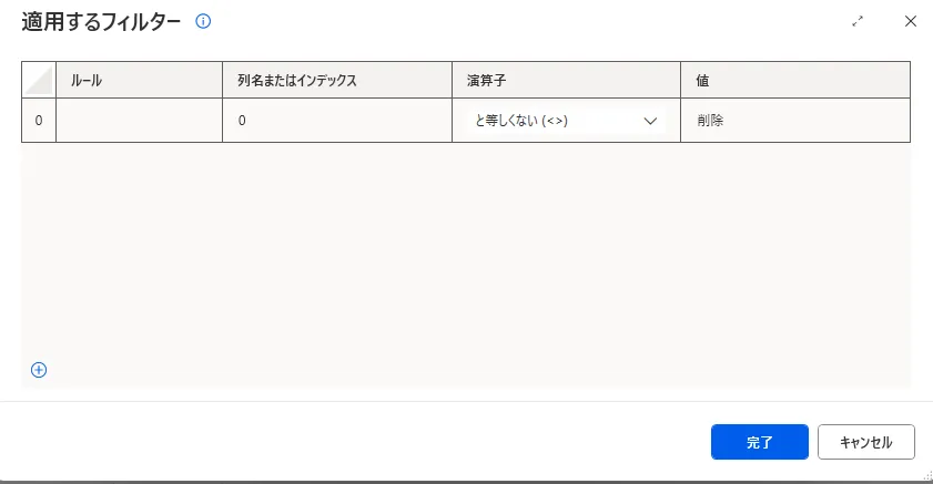 「削除」と書かれていないデータ行だけを抽出します。
