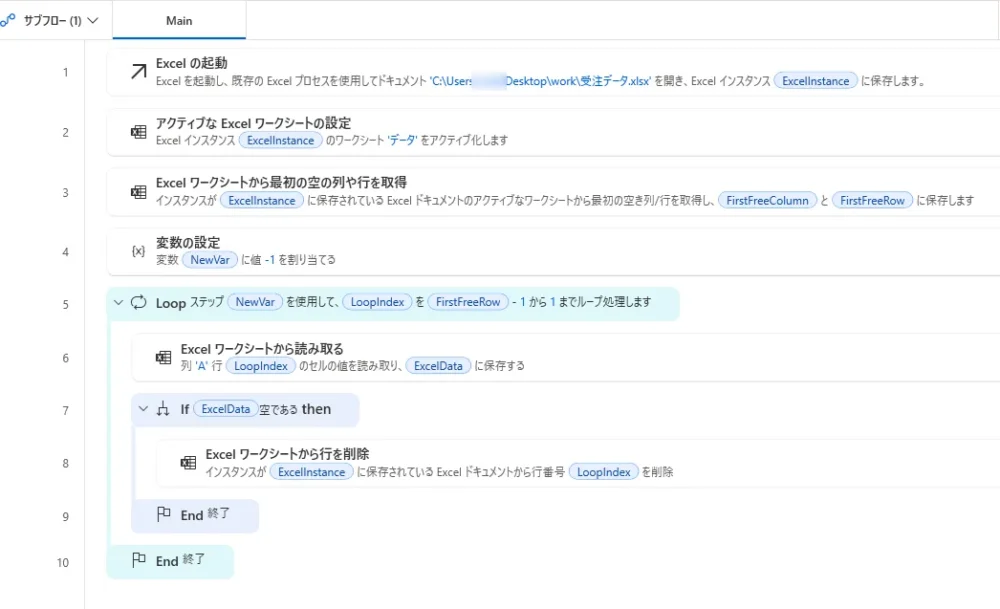 Power Automate DesktopでExcelの空白行を自動削除する方法