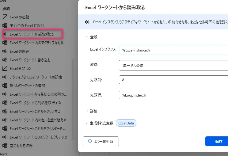6. 「Excel ワークシートから読み取る」