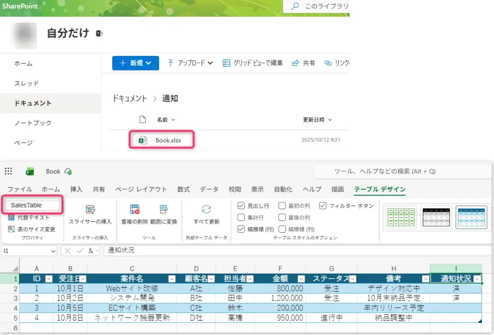 Power Automateを使って、Excelの受注ステータスを取得して、自動でTeamsチャット通知するフローを作成します。