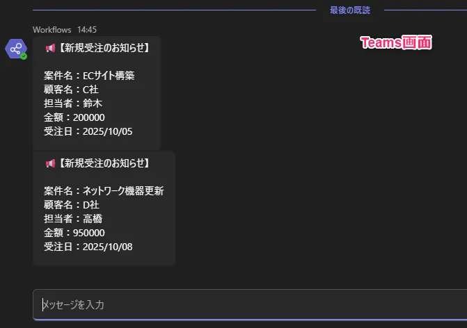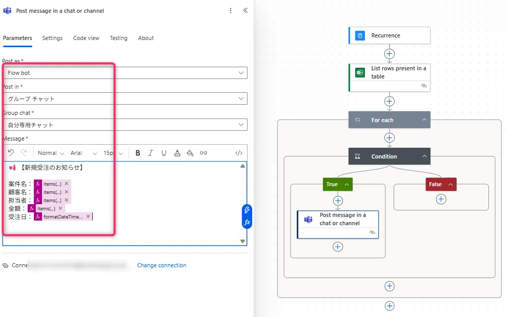 【Power Automate】Excelの受注行だけをTeamsチャット通知|フロー作り方