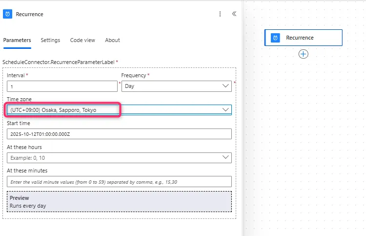 6. 「Time zone」で、「(UTC+09:00) Osaka, Sapporo, Tokyo」を選択