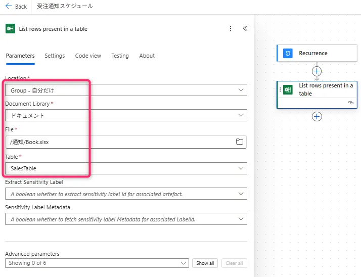 8. OneDrive または SharePoint 上に作成してあるExcelを設定
