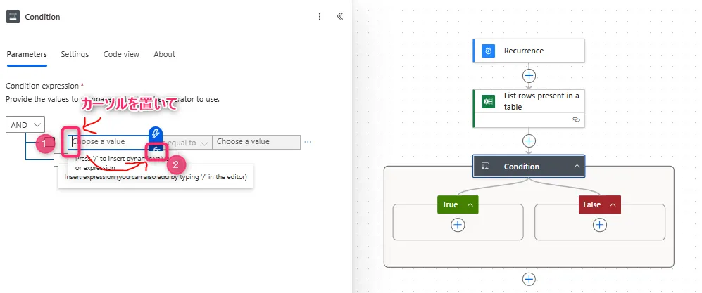 13. 「Choose a value」の欄にカーソルを置いて、「fx」をクリック。