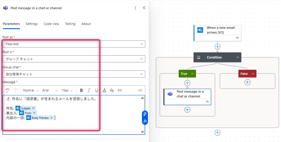 Power Automateを使って、Outlookで受信したメール件名に特定の文字列が含まれている場合に、
