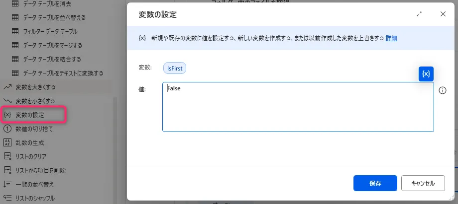 変数 IsFirst に値 Falseを割り当てます。