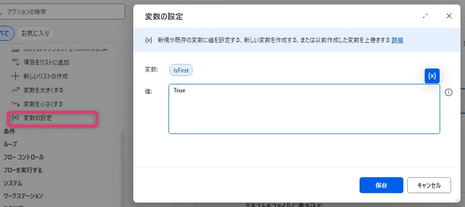変数 IsFirst に値 True を割り当てます。