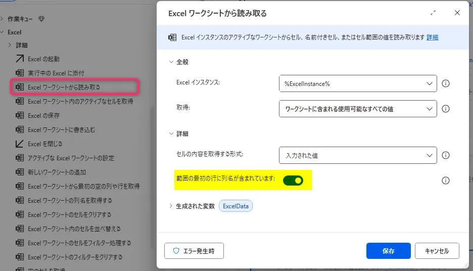 13. 「Excel ワークシートから読み取る」