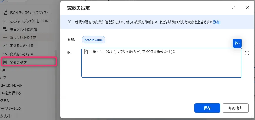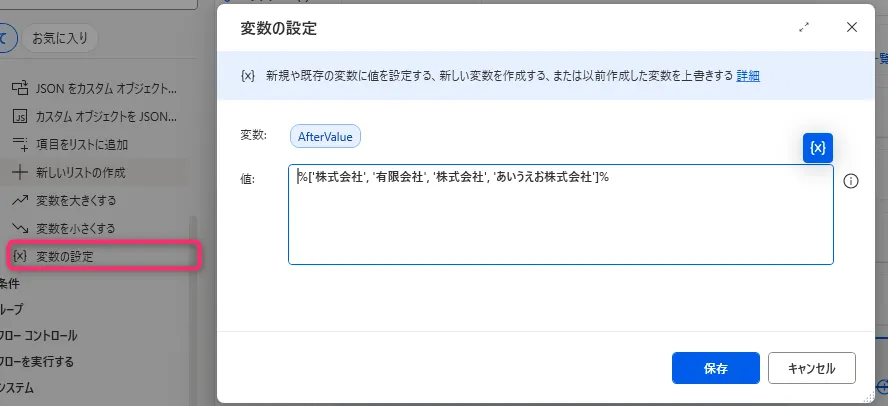本手順では、置換前・置換後の文字列を Power Automate Desktop の「リスト」 で管理し、