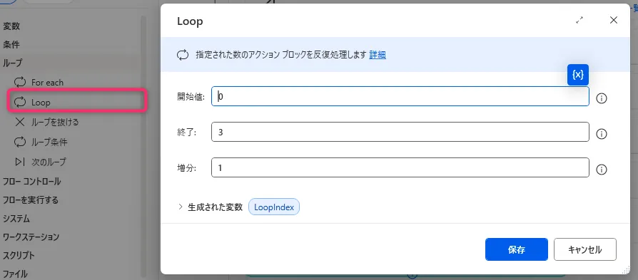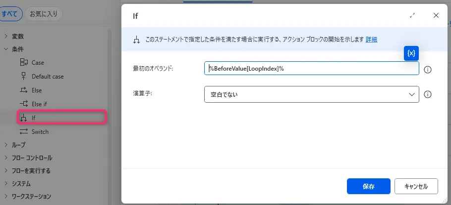 最初のオペランド:%BeforeValue[LoopIndex]%