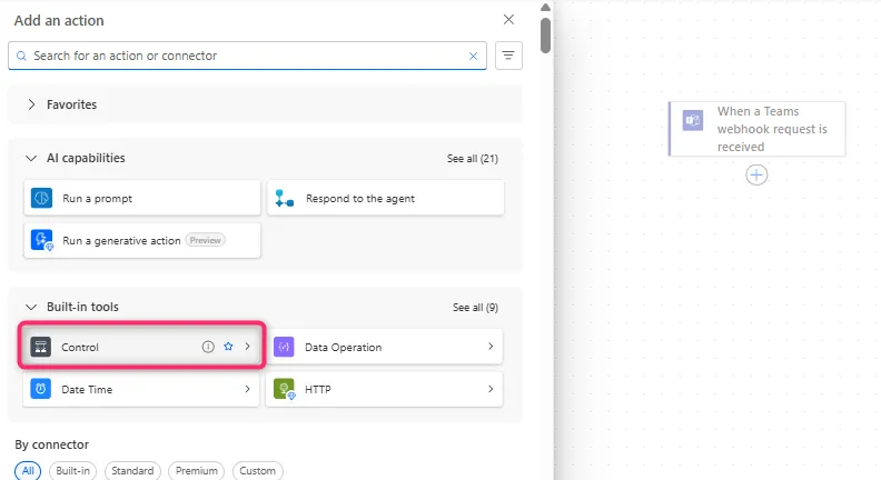 最初に、PythonからのHTTPリクエストを受け取るフローを作成します。