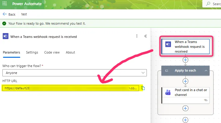「HTTP URL」はフローを保存した後に生成されるので、いまは触らなくてOK